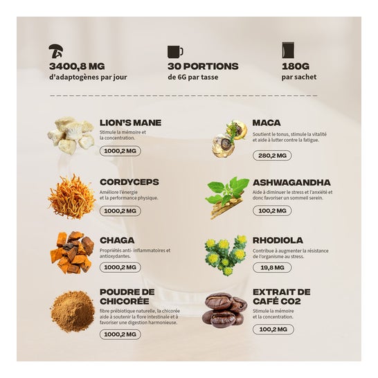 - 1000,2 mg de extrato de cordyceps: fungo adaptógeno que contribui para seu bem-estar geral
