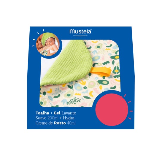 Mustela Kit Toalha + Gel Lavante 200ml + Creme Rosto 40ml