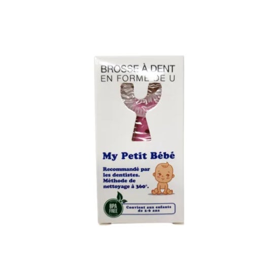 Meu Petit Bébé Escova de Dentes em U Rosa é projetada para crianças de 2 a 6 anos, limpa simultaneamente os dentes e as gengivas graças à sua forma ergonômica em U.
