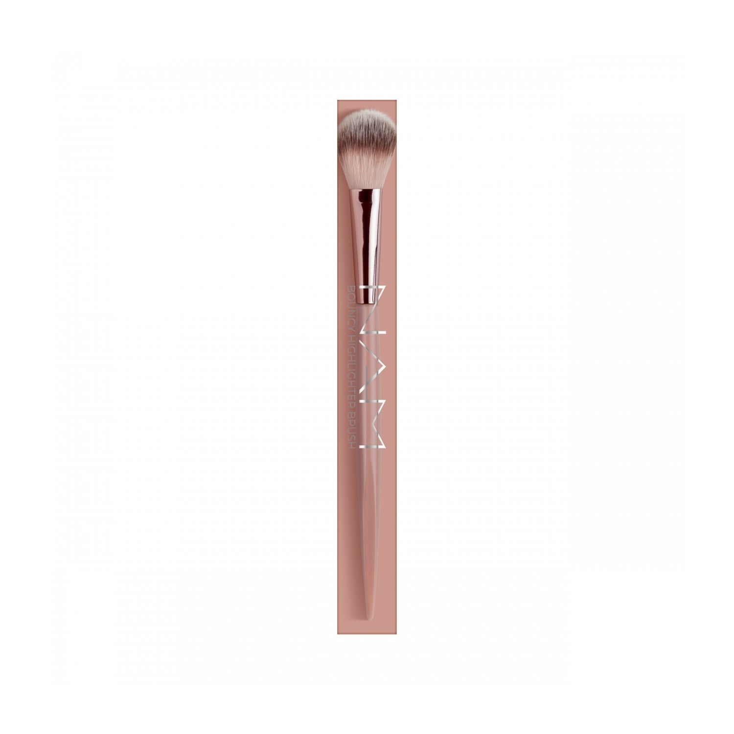 Nam Bouncy Highlighter Brush 1 ud para aplicação precisa de iluminador é um pincel vegano e cruelty free da NAM Cosmetics pensado para aplicar iluminador com precisão. Apresenta um formato redondo e definido, com fibras suaves e ligeiramente achatadas, ideal para realçar: