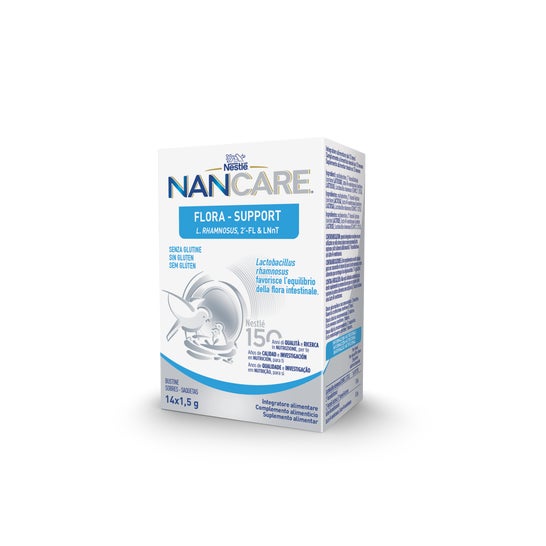 Nancare Flora Support 14 Envelopes x 1,5 gr éespecialmente indicado em casos de diarréia causada durante um tratamento com antibióticos. Mais da metade dos bebês que são tratados com antibióticos experimentam episódios de diarréia. Durante os primeiros anos de vida, o sistema imunitário de um bebé ainda é imaturo e por isso precisa de protecção extra.