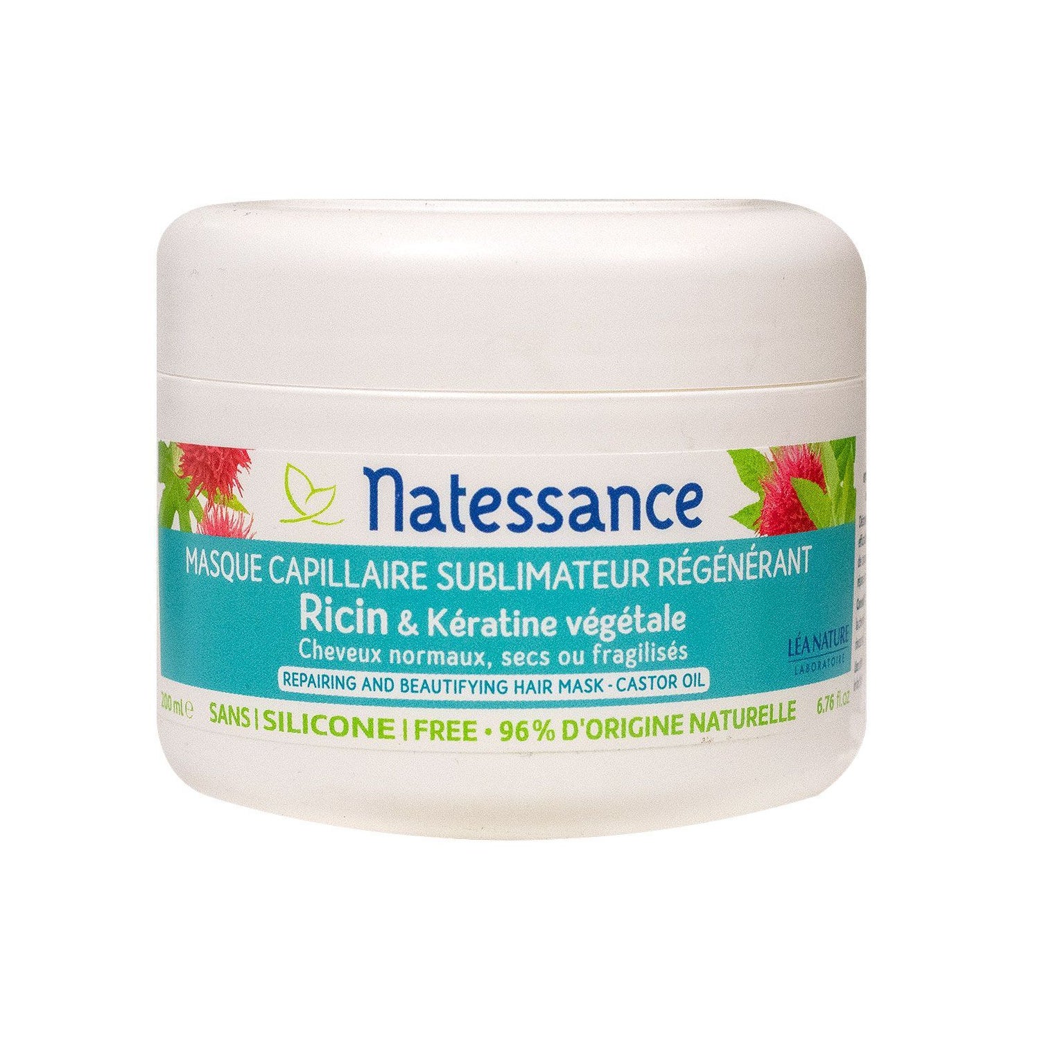 Natessance Subliming Regenerating Hair Mask 200ml é um tratamento de pH fisiológico concebido para sublimar e regenerar o cabelo. Graças aos seus ingredientes, entre os quais os óleos de rícino, macadâmia e coco, e a queratina vegetal, esta máscara capilar repara, nutre, fortalece e protege o cabelo. Desde a primeira utilização, o cabelo fica radiante de saúde, brilho e luminosidade, para cabelos normais, secos ou danificados.