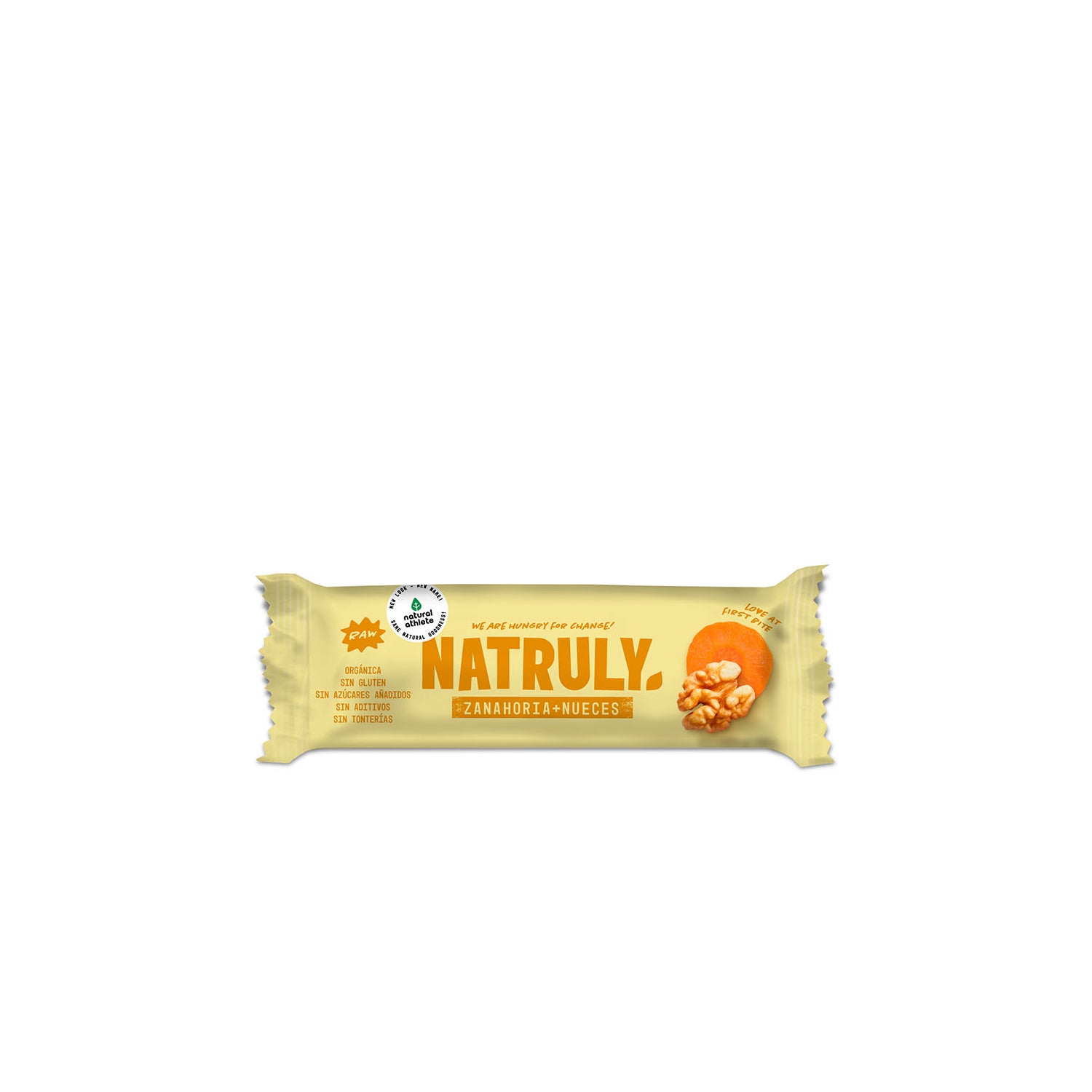 Barra energética, feita com ingredientes da agricultura biológica, ideal como lanche a qualquer hora do dia, com um delicioso sabor a cenoura, com amêndoas, nozes, sultanas e canela. Proporciona uma elevada percentagem de hidratos de carbono, que fornecem mais energia diariamente, e graças à fibra que contém nos seus frutos secos, facilita o trânsito intestinal e dá uma sensação de saciedade.