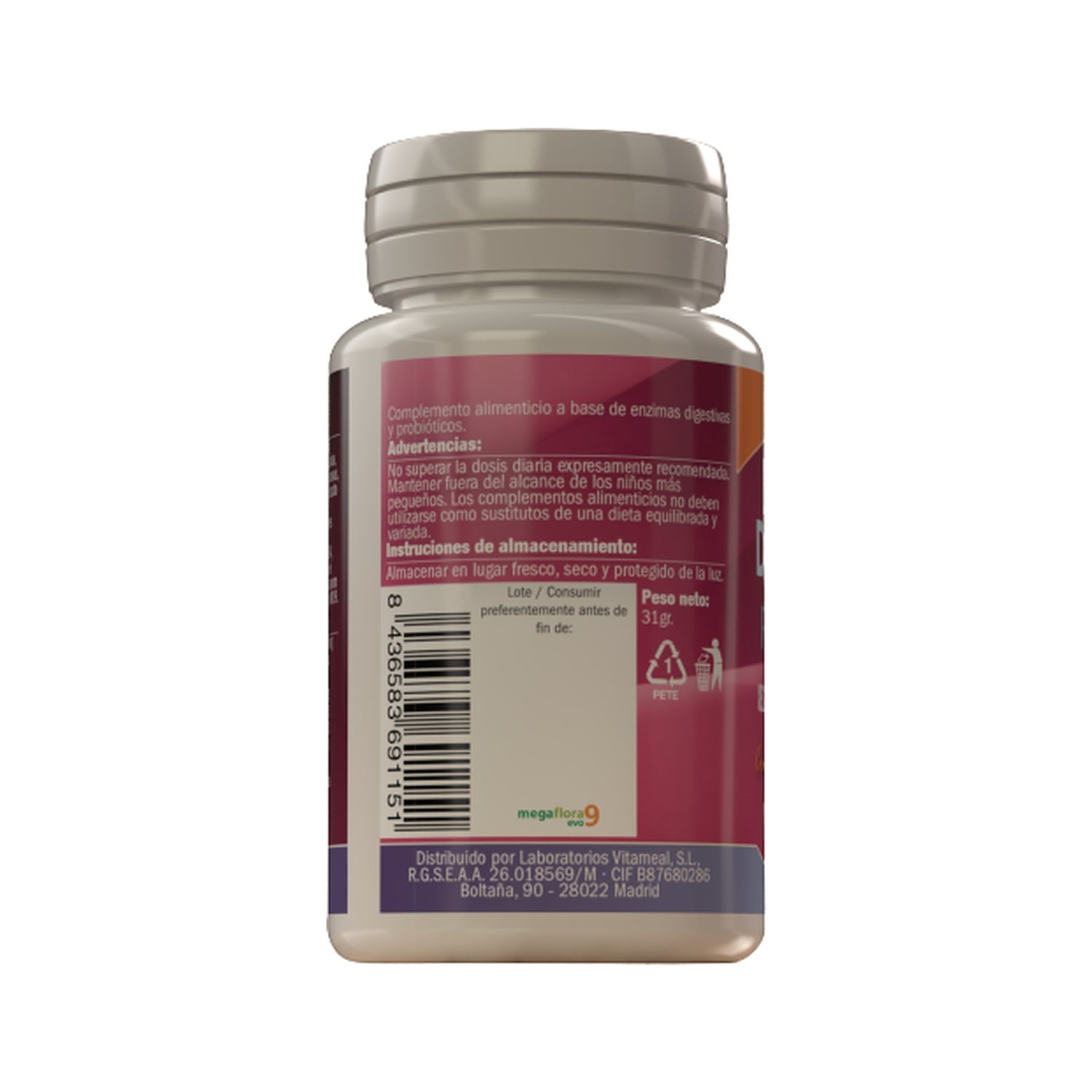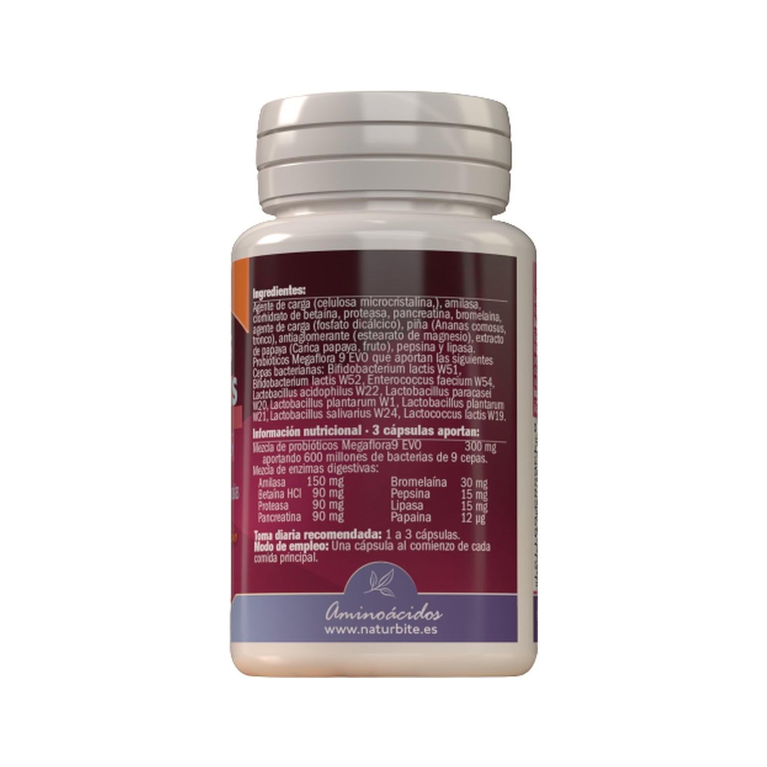 Suplemento alimentar à base de enzimas digestivas e probióticos. Adequado como suplemento a qualquer dieta. As enzimas digestivas ajudam a melhorar a digestão, enquanto que os probióticos contribuem para uma melhoria do equilíbrio microbiano e da flora intestinal, promovendo um bom trânsito intestinal.