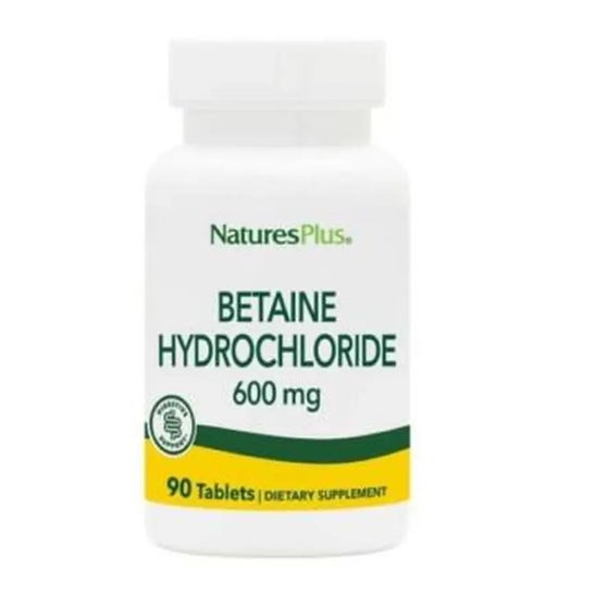NaturesPlus Betaine HCL 600mg 90comp é um suplemento alimentar que ajuda no fluxo intestinal.