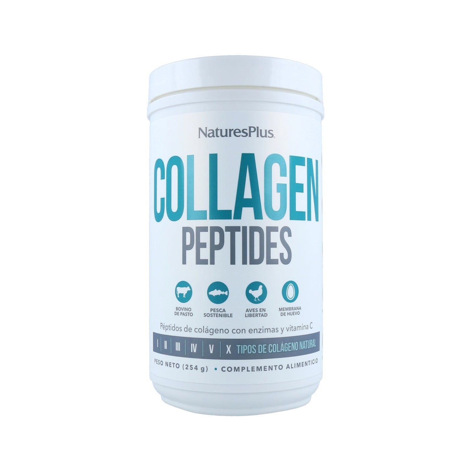 NaturesPlus Collagen Peptides 254g é um suplemento alimentar em pó que ajuda a apoiar o cabelo, a pele, as unhas e as articulações saudáveis.