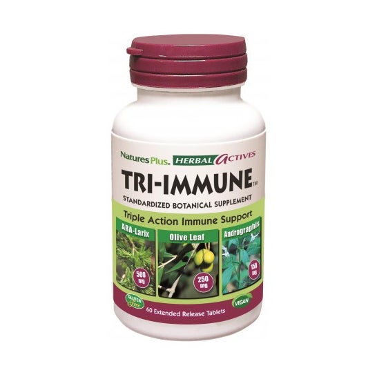 NaturesPlus Tri-Immune 60comp é um suplemento alimentar que fornece uma dose de extracto de azeitona que proporciona efeitos antioxidantes no organismo. Protege as células do envelhecimento prematuro. Actua positivamente no fluxo sanguíneo.
