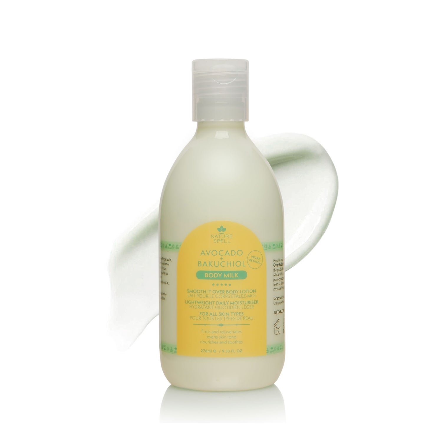 Creme corporal líquido com bakuchiol, um substituto natural do retinol. Ajuda a tratar os sinais de envelhecimento, bem como a hidratar a pele graças ao extracto de abacate.