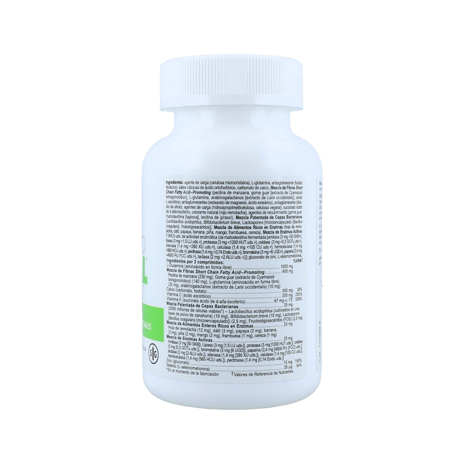Formulado com uma combinação de probióticos, fibras solúveis e enzimas digestivas, que são libertados bifásicamente em duas fases.