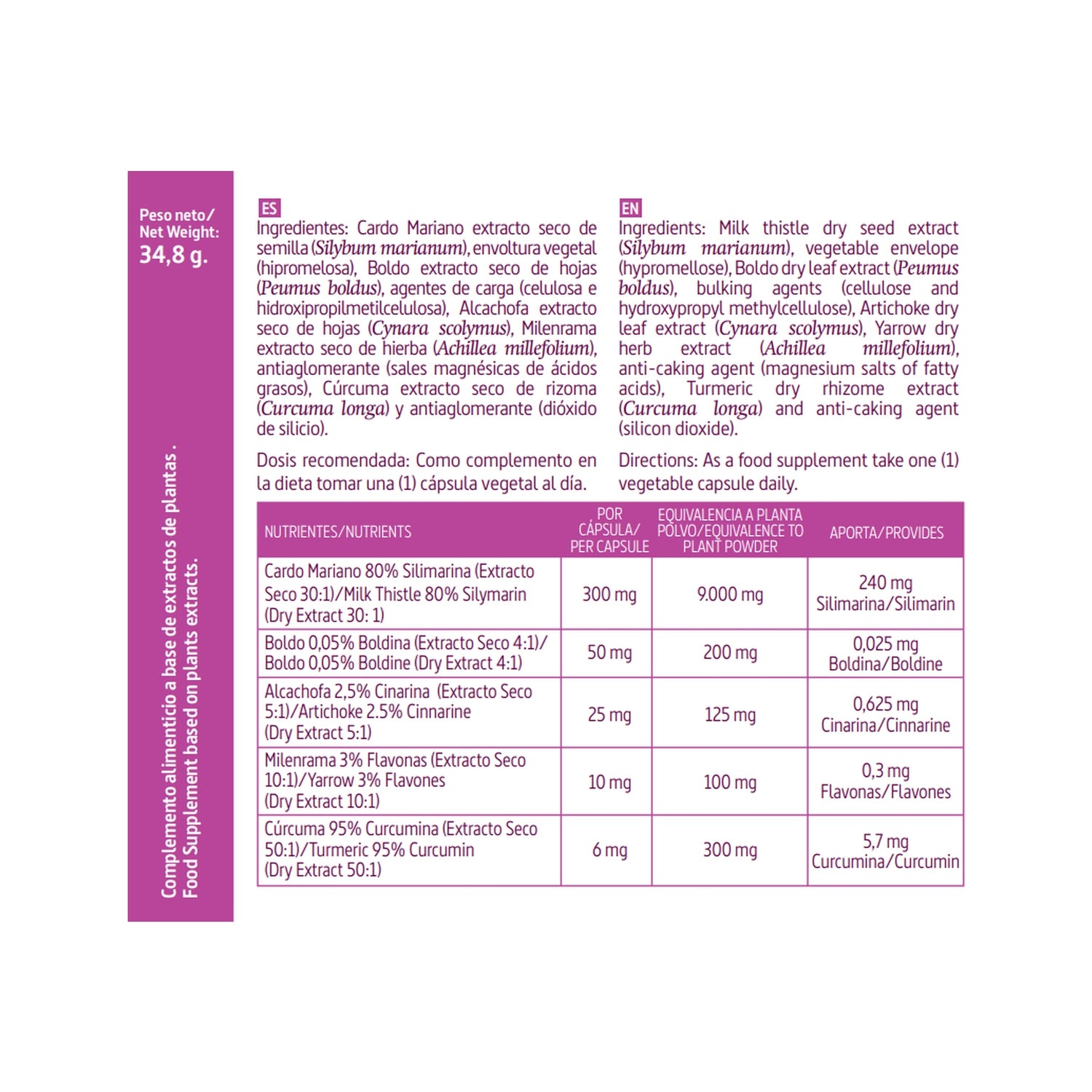 Um suplemento alimentar formulado com cardo de leite que contribui para a síntese de proteínas no fígado, tem propriedades anti-inflamatórias e promove o desenvolvimento de novos tecidos para proteger este órgão dos danos causados por certas toxinas, além de estimular o glutatião, que beneficia a desintoxicação do sistema digestivo. Os principais benefícios deste produto são ajudar o corpo a regenerar e proteger a função hepática, prevenir a obstipação, ajudar na flatulência, controlar o colesterol, eliminar gorduras e reparar o fígado contra doenças como a cirrose ou a hepatite.