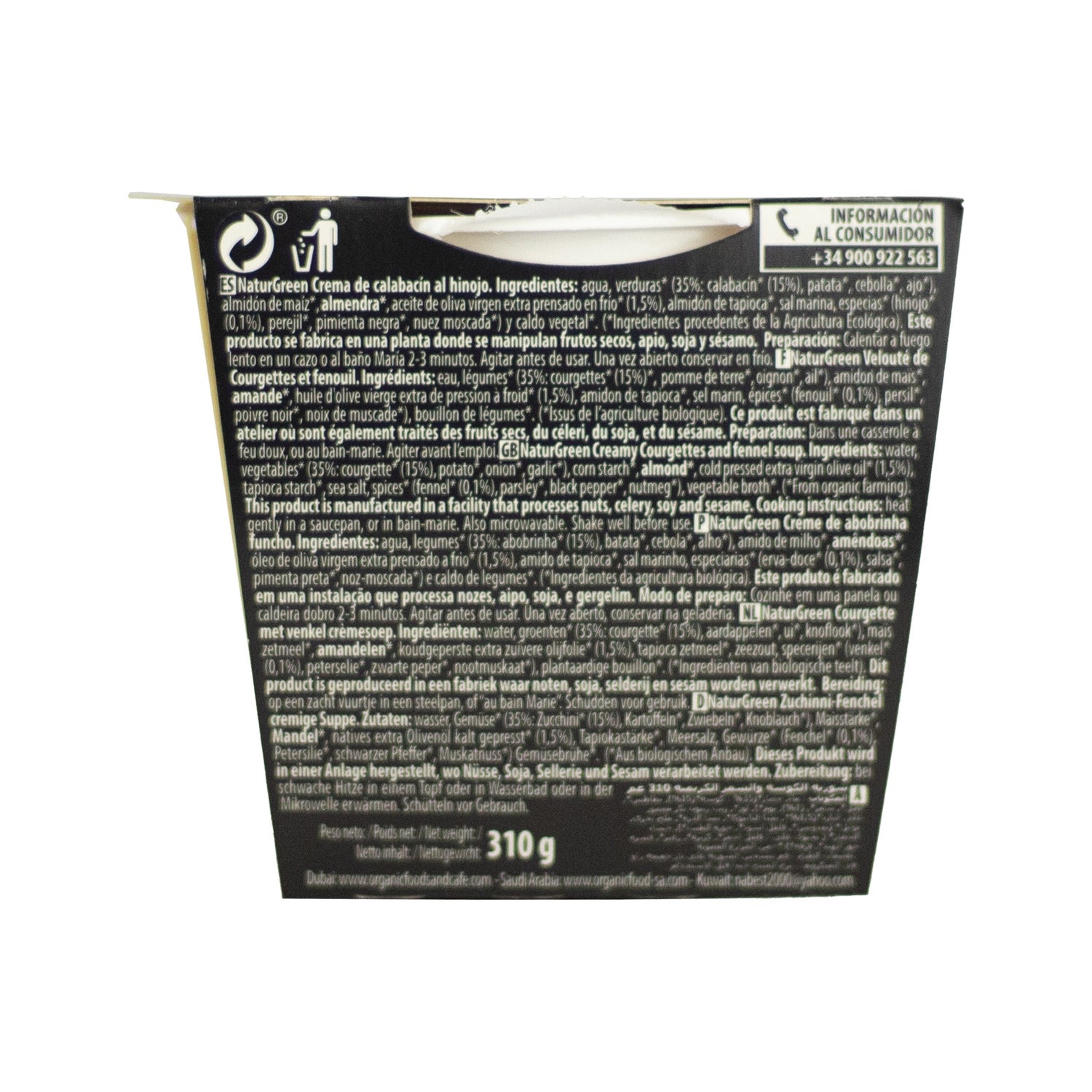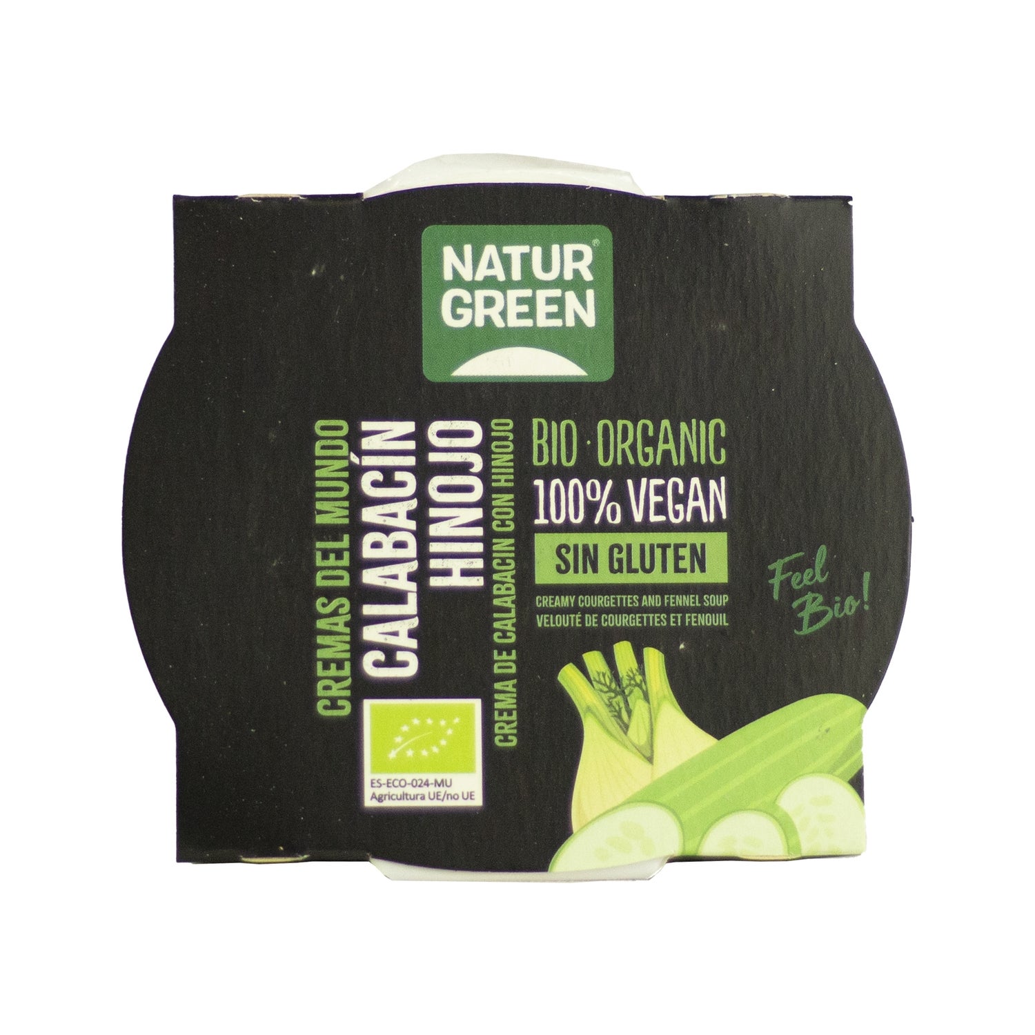 Naturgreen Cream Organic Courgette E Fennel 310 G é um creme vegetal orgânico, feito com curgete e funcho. A abobrinha é constituída principalmente por água e minerais com muito poucas calorias. É também um produto orgânico, sem lactose, sem adição de açúcares, sem ovos e sem proteína do leite
