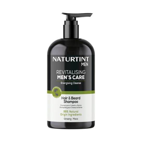 Naturtint Revitalising Men's Care Champô 500 ml limpeza energizante é um champô 2 em 1 para homens, pensado para limpar e revitalizar o cabelo e a barba em uma rotina diária. Sua fórmula é 99% natural e está enriquecida com ginseng e maca. Proporciona um aroma fresco masculino e é adequado para todo tipo de pele, incluindo as sensíveis.