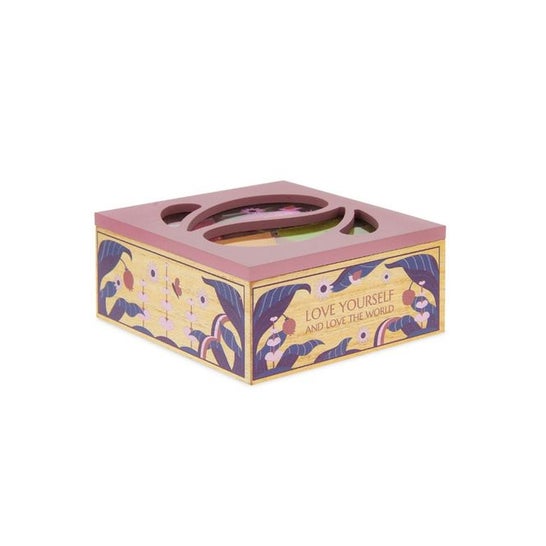 Cofre de coleção com compartimentos que inclui 20 saquetas de filtro de papel com quatro variedades de infusões naturais. São bebidas deliciosas que contribuem para o bem-estar geral do organismo e são ideais para desfrutar a qualquer momento do dia. Indicado para adultos.