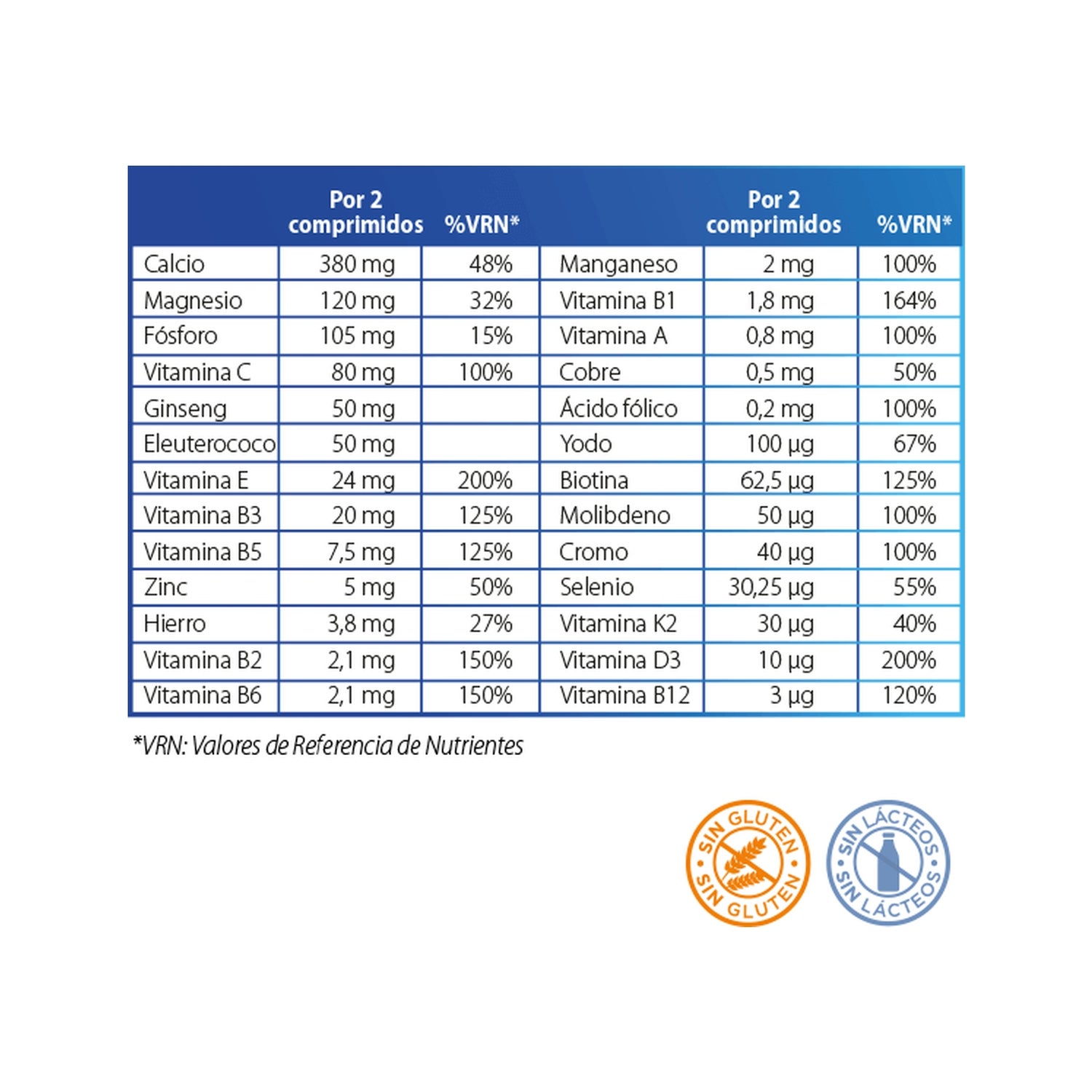 Suplemento alimentar formulado com extrato seco de eleutherococcus, vitamina E e extrato seco de ginseng. Favorece o funcionamento normal do metabolismo energético e ajuda a reforçar as defesas naturais do organismo. Os seus ingredientes têm propriedades adaptogénicas e revitalizantes. Indicado para adultos.