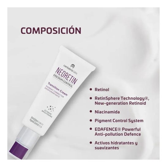 Neoretin Discrom Control Transition Corrector de Transição Creme Despigmentante 50ml é um creme despigmentante para manutenção ou para alternar com outros tratamentos despigmentantes.