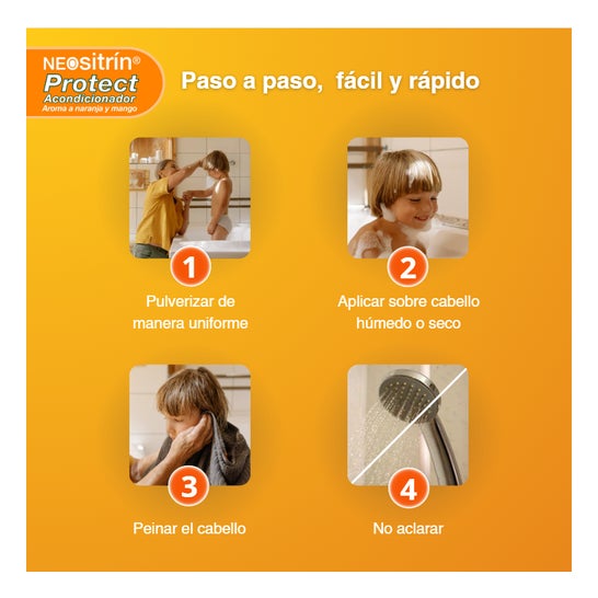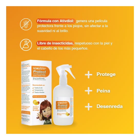 Neositrín Protect Condicionador Repelente para Piolhos Spray 100ml é um condicionador sem enxágue que desembaraça o cabelo e ajuda a repelir os piolhos.