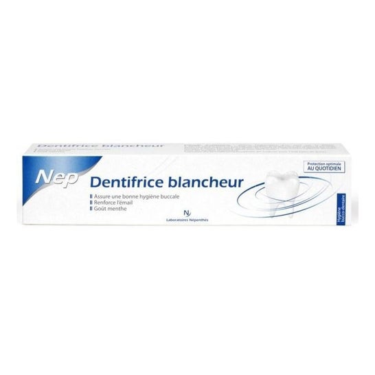 O dentífrico brancura da Nepenthes assegura uma boa higiene bucal e um melhor branqueamento dos dentes. Protege as gengivas e reforça o esmalte. Os dentes, saudáveis, tornam-se mais brilhantes. CARACTERÍSTICAS O dentífrico brancura tem um sabor a menta para uma melhor frescura. Contém monofluorfosfato de sódio (ou seja, 1450 ppm de flúor). INFORMAÇÃO O dentífrico brancura da Nepenthes assegura uma boa higiene bucal e um melhor branqueamento dos dentes. Protege as gengivas e reforça o esmalte. Os dentes, saudáveis, tornam-se mais brilhantes.