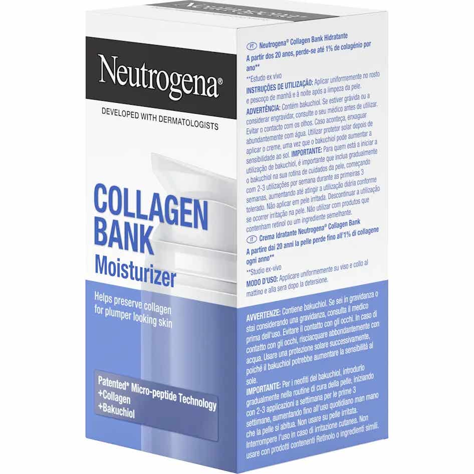 Neutrogena Collagen Bank Creme Hidratante 50ml é uma creme hidratante que contribui para fortalecer o colágeno na pele do rosto e alisar as linhas de expressão.