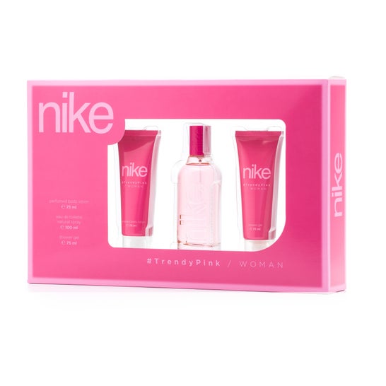 Caixa de cuidados corporais que inclui uma Eau de Toilette Trendy Pink Woman, um gel de duche perfumado e uma loção corporal. Ajuda a manter a pele limpa e perfumada com um aroma doce e frutado. As fórmulas contêm ingredientes nutritivos e hidratantes. Adequado para todos os tipos de pele.