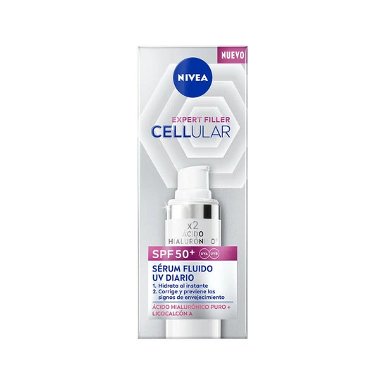 Nivea Cellular Expert Filler Sérum Fluido Ácido Hialurônico Spf50+ é um produto projetado para o cuidado diário da pele do rosto. Este sérum fluido proporciona uma hidratação imediata, contribuindo para melhorar a aparência geral da pele. Sua fórmula está focada em corrigir e prevenir os sinais do envelhecimento, garantindo uma pele mais radiante e saudável.