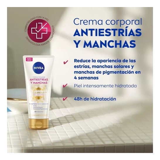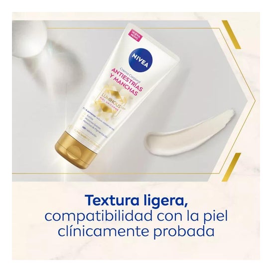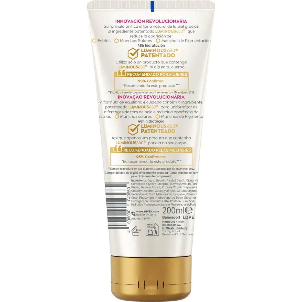 Nivea Luminous 630 Creme Corporal Antiestrias e Manchas 200ml é um produto desenvolvido para o cuidado da pele. Sua fórmula se caracteriza por uma textura leve que facilita a aplicação e a absorção.