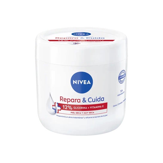 Nivea Repara & Cuida 12% Glicerina + Vitamina E é um creme corporal projetado para proporcionar alívio imediato à pele seca e muito seca. Sua fórmula inovadora, que contém 12% de glicerina e vitamina E, age de maneira eficaz, alcançando uma hidratação que perdura até 72 horas.
