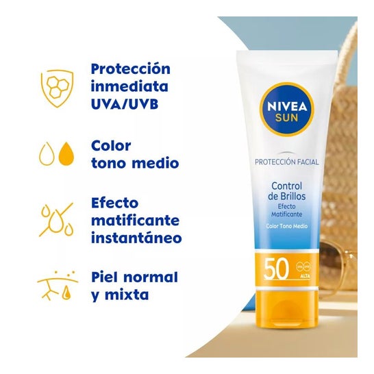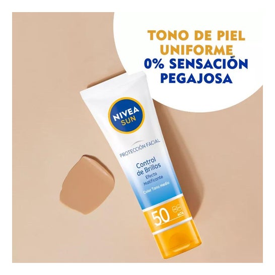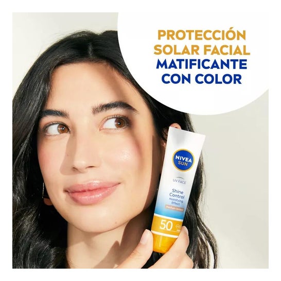 Nivea Sun Creme Solar Facial Control Brilhos SPF50 40ml é um protetor solar facial que ajuda a proteger a pele da ação dos raios UVA/UVB e dos efeitos da luz visível de alta energia (HEVL), graças aos seus filtros fotoestáveis SPF50. É indicado para peles normais a secas devido à sua fórmula hidratante que inclui pigmentos de cor que ajudam a uniformizar o tom do rosto. Contém 40ml.