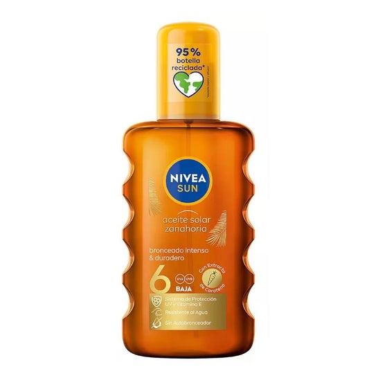 NIVEA SUN Óleo Solar em Spray FP 6 protege contra as queimaduras solares e proporciona uma proteção UVA/UVB imediata e altamente eficaz. Compatibilidade com a pele dermatologicamente comprovada.