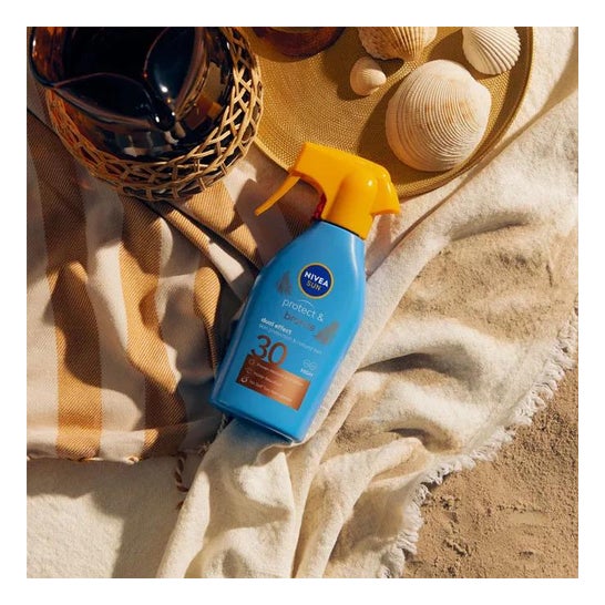 Nivea Sun Protect & Tan Double Effect SPF30 270ml é um elevado protector solar que evita danos causados pela radiação UVA e UVB.