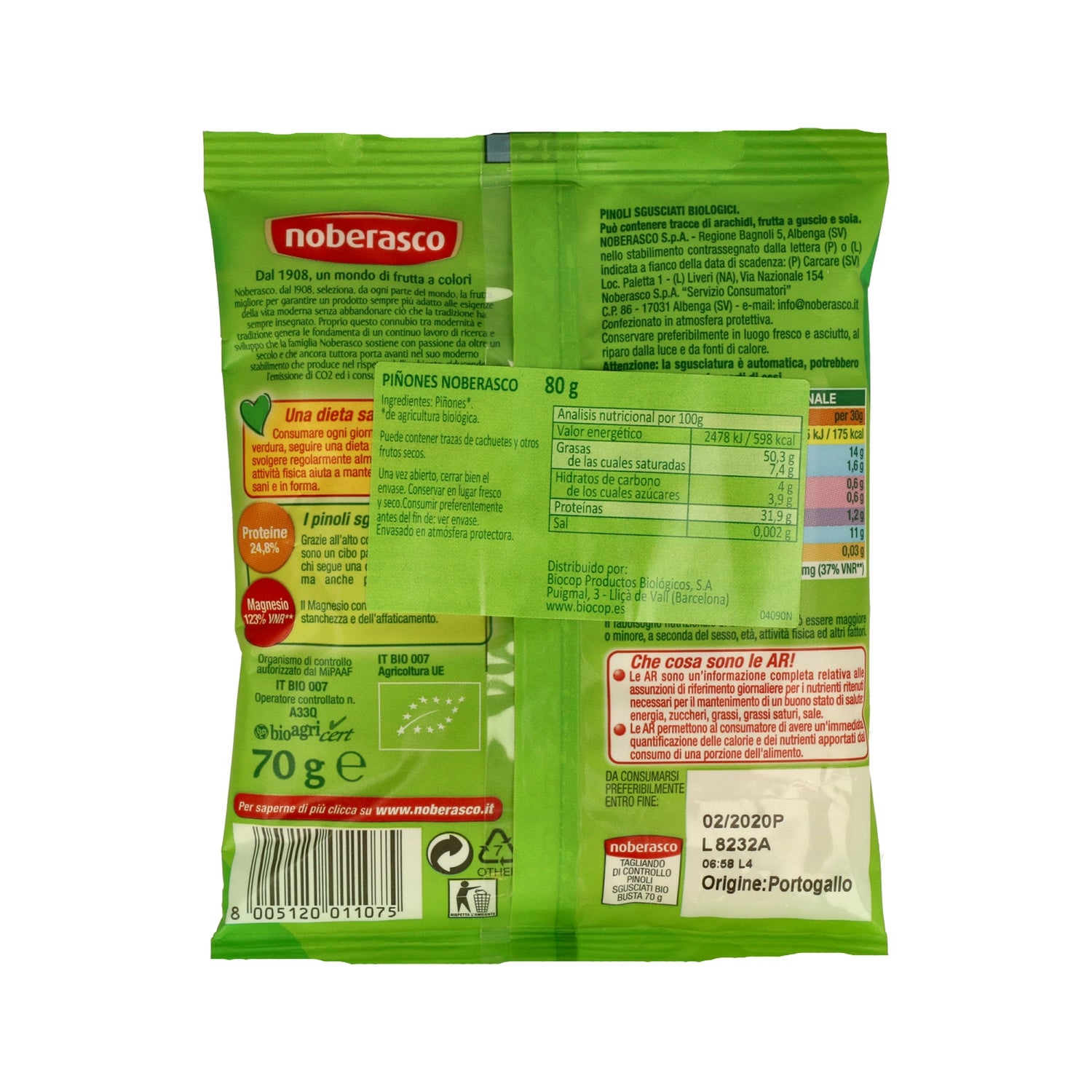 Pinhões sem casca naturais de cultivo agrícola compostos por Ômega 3 e Ômega 6. Contribuem para fornecer proteínas e gorduras benéficas. São ideais como complemento para quem pratica desporto e em dietas vegetarianas ou veganas. Ricos em fósforo. Podem ser adicionados a qualquer prato, ideais para molhos e sobremesas. Prontos a consumir. Conservar em local fresco e seco. Pode conter vestígios de: Amendoins, Frutos secos com casca.