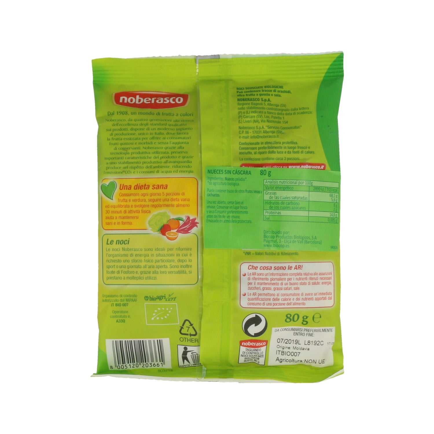 Noberasco Shelled Walnuts 80g um produto alimentar à base de nozes sem casca. um petisco perfeito e saudável cheio de propriedades, tanto organolépticas como saudáveis. muito adequado para fornecer ácidos gordos vegetais. o seu elevado conteúdo em vitaminas ómegas 3 e 6 e vitamina e torna-o uma fonte de saúde. recomendado em processos de mudança de hábitos saudáveis.