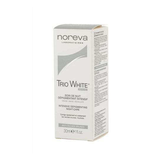 Noreva Trio White Night Depigmenting Treatment é um tratamento despigmentante noturno intensivo que bloqueia de forma eficaz e duradoura a produção de melanina, corrigindo rápida e visivelmente as manchas existentes, prevenindo o aparecimento de novas manchas e realçando a luminosidade da tez.