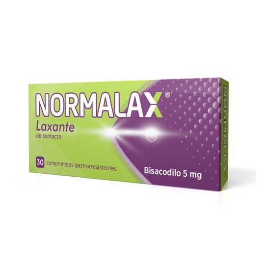 Bisacodilo, a substância ativa do Normalax, é um laxante por contacto do grupo difenilmetano, que, após metabolismo por hidrólise, estimula a mucosa do intestino grosso provocando peristaltismo do cólon. Isto resulta na estimulação da defecação, redução do tempo de trânsito e amolecimento das fezes. Mediante a utilização do medicamento durante o dia, o efeito é obtido em aproximadamente 6 horas, enquanto se a administração for antes de deitar, o efeito é obtido entre 8 e 12 horas.