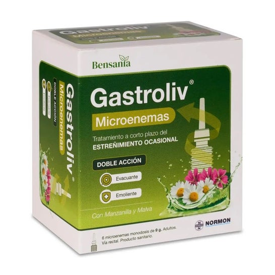 Normon Bensania Gastroliv Microenemas 6 uds são microenemas projetados para proporcionar uma ação local que facilita uma evacuação suave. Esses microenemas são úteis para ajudar a aliviar a constipação ocasional, cuidando ao mesmo tempo da mucosa retal.