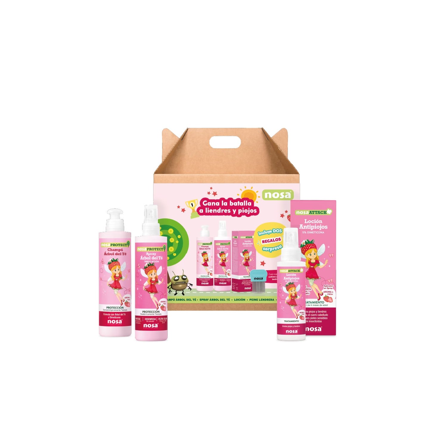 Tratamento anti-pediculite capilar que inclui 1 champô, 1 loção em spray e 1 pente nit. Trabalham neutralizando o sistema nervoso dos piolhos e lêndeas enquanto a escova de nitroglicerina os arrasta para fora do cabelo para uma limpeza total. A sua fórmula ajuda a prevenir o recrescimento para contribuir para a saúde do couro cabeludo.