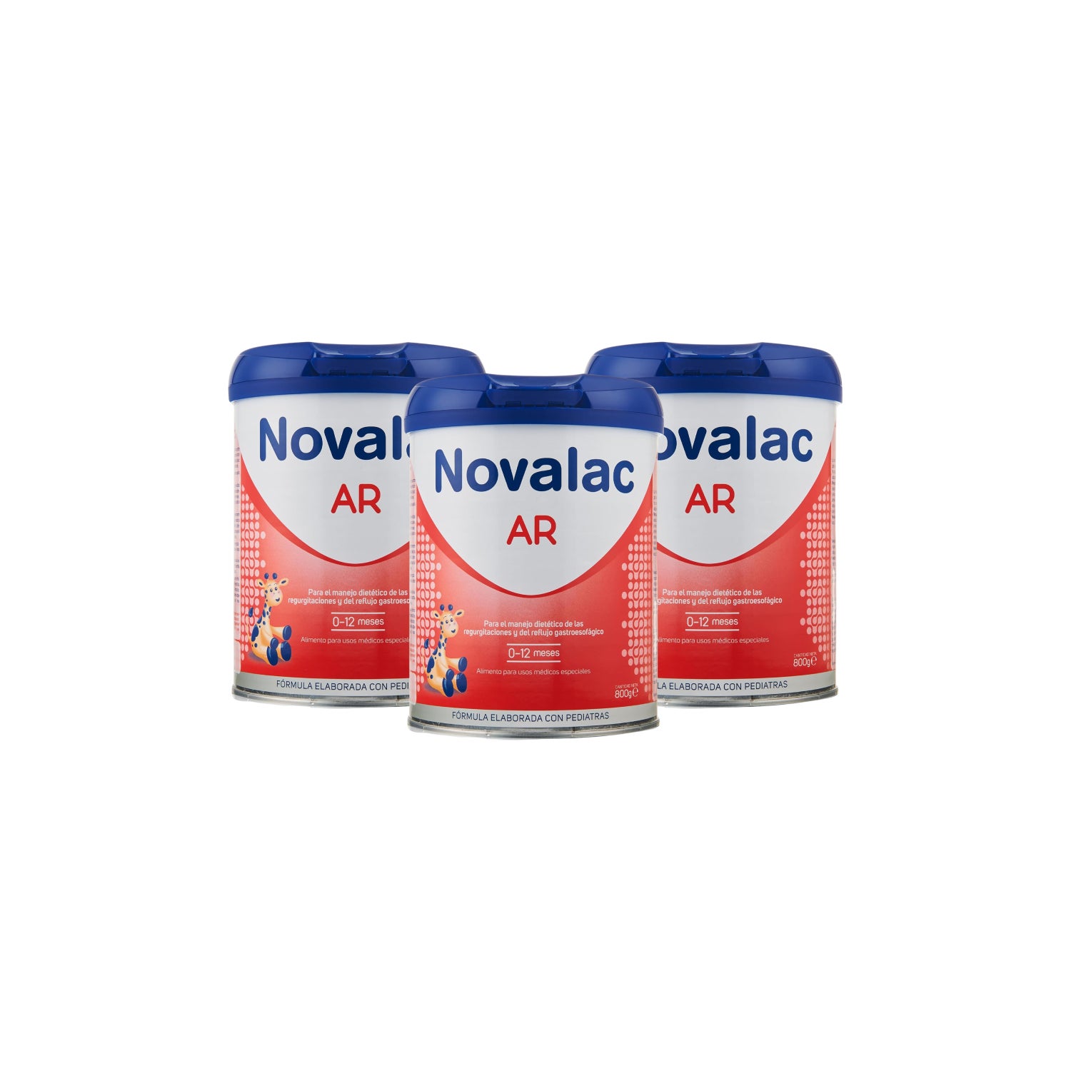 Novalac Ar Leite 0-12m 3x800g são pós de alimento dietético especialmente projetados para bebês com intolerância ou alergia ao ovo, ou para celíacos.