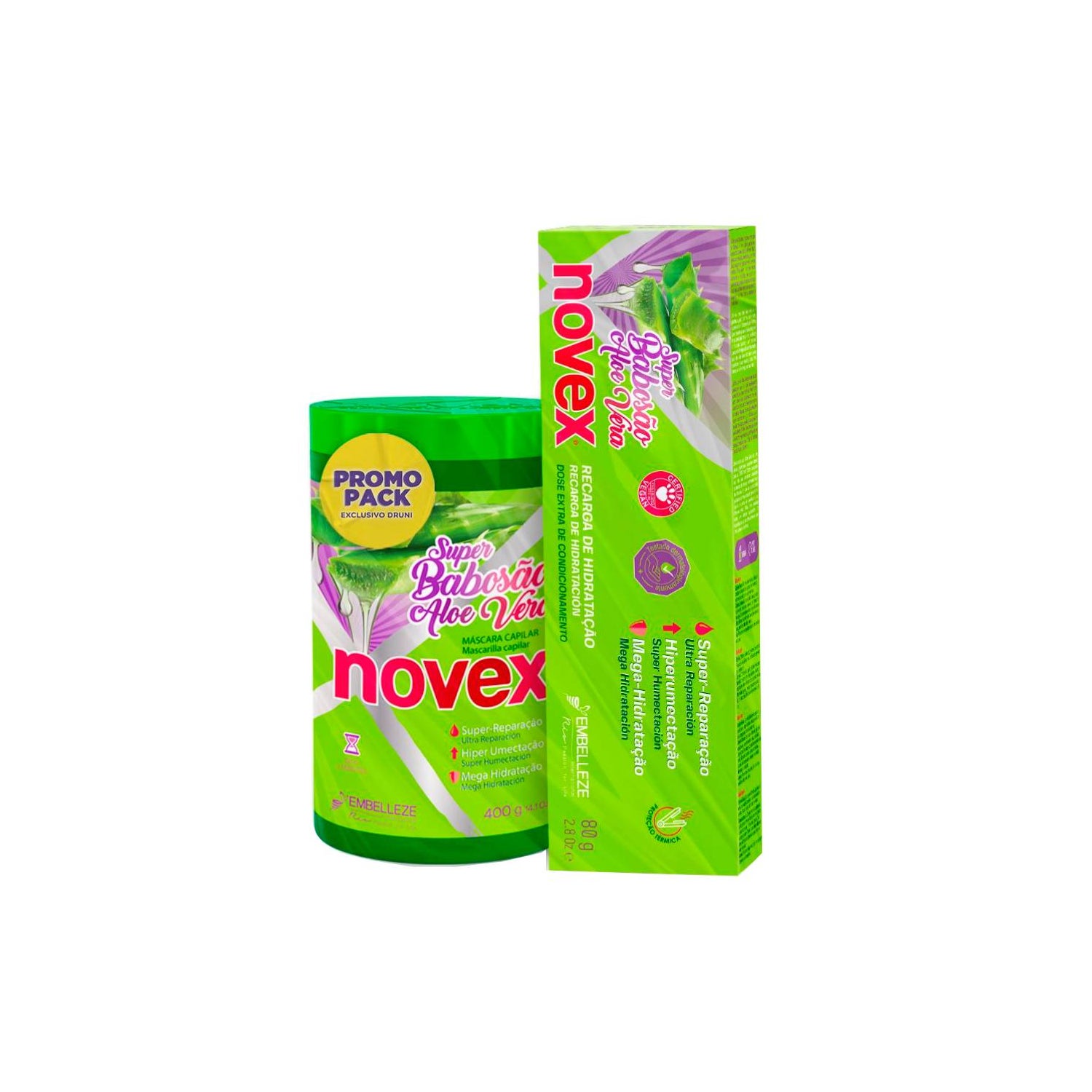 Novex Super Babosão Aloe Vera Pack é um conjunto projetado para o cuidado do cabelo que inclui dois produtos destacados.