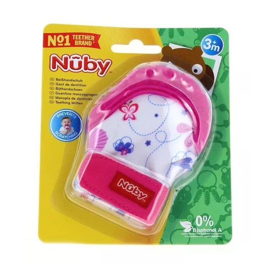 Luva de dentição fabricada em silicone 100% macio e seguro para os mais pequenos. Além disso, tem diferentes texturas e relevos em ambos os lados, que ajudam a massajar as gengivas e a aliviar o desconforto da dentição. Também é adequado para limpar os dentinhos do bebé. Inclui um saco de arrumação. Adequado a partir dos 3 meses de idade.