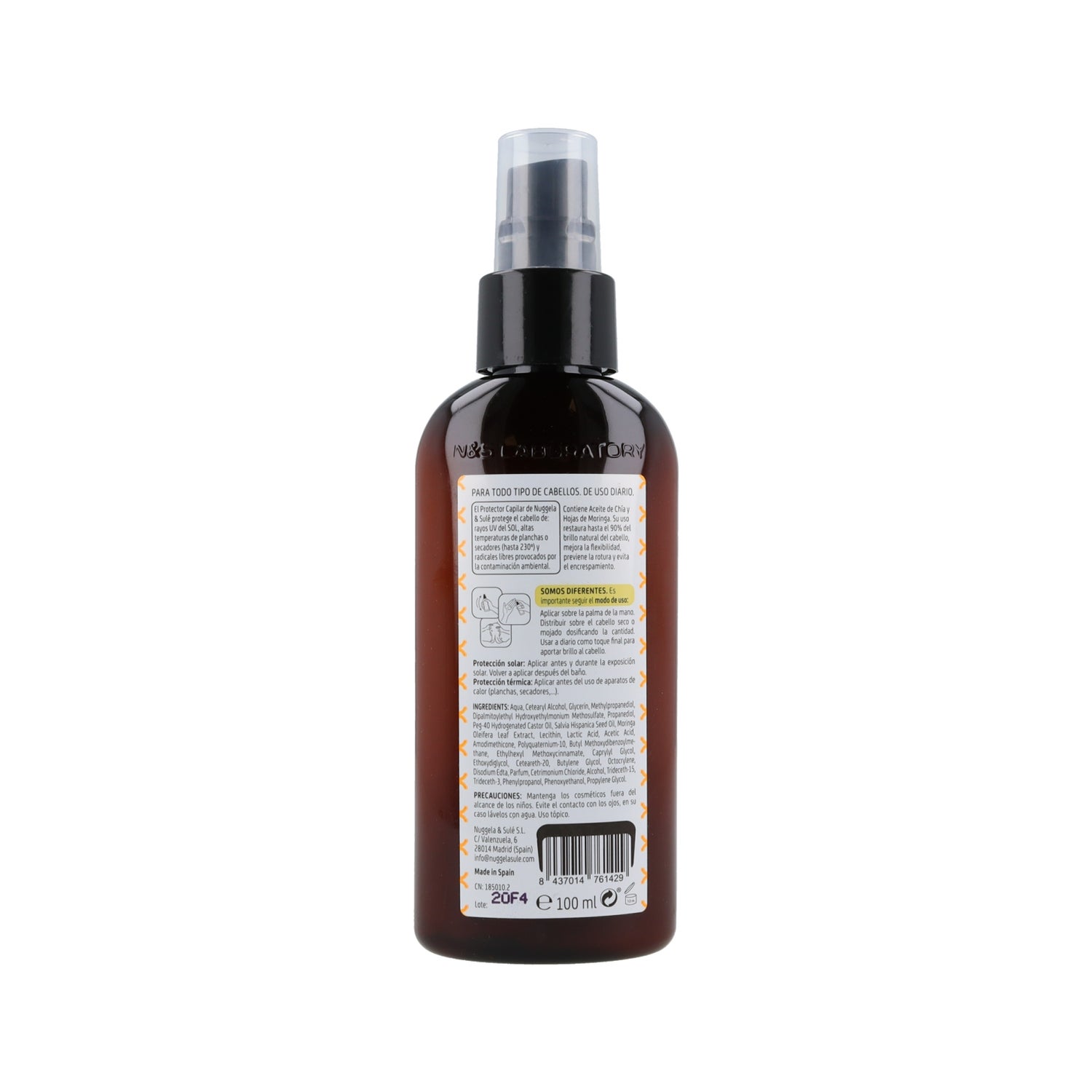 Nuggela & Sulé Total Hair Protector 125ml é um protector capilar com óleo de chia que nos fornece ácidos gordos essenciais como ómega 3 e 6, vitaminas, flavonóides e antioxidantes. Esta combinação de ingredientes activos protege profundamente os nossos cabelos de qualquer agressão e fortalece-os.