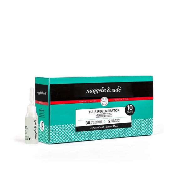 Nuggela & Sulé Regenerador Capilar 8x10ml contém as vitaminas e oligoelementos necessários para restaurar o cabelo e recuperar a vitalidade e densidade perdidas.