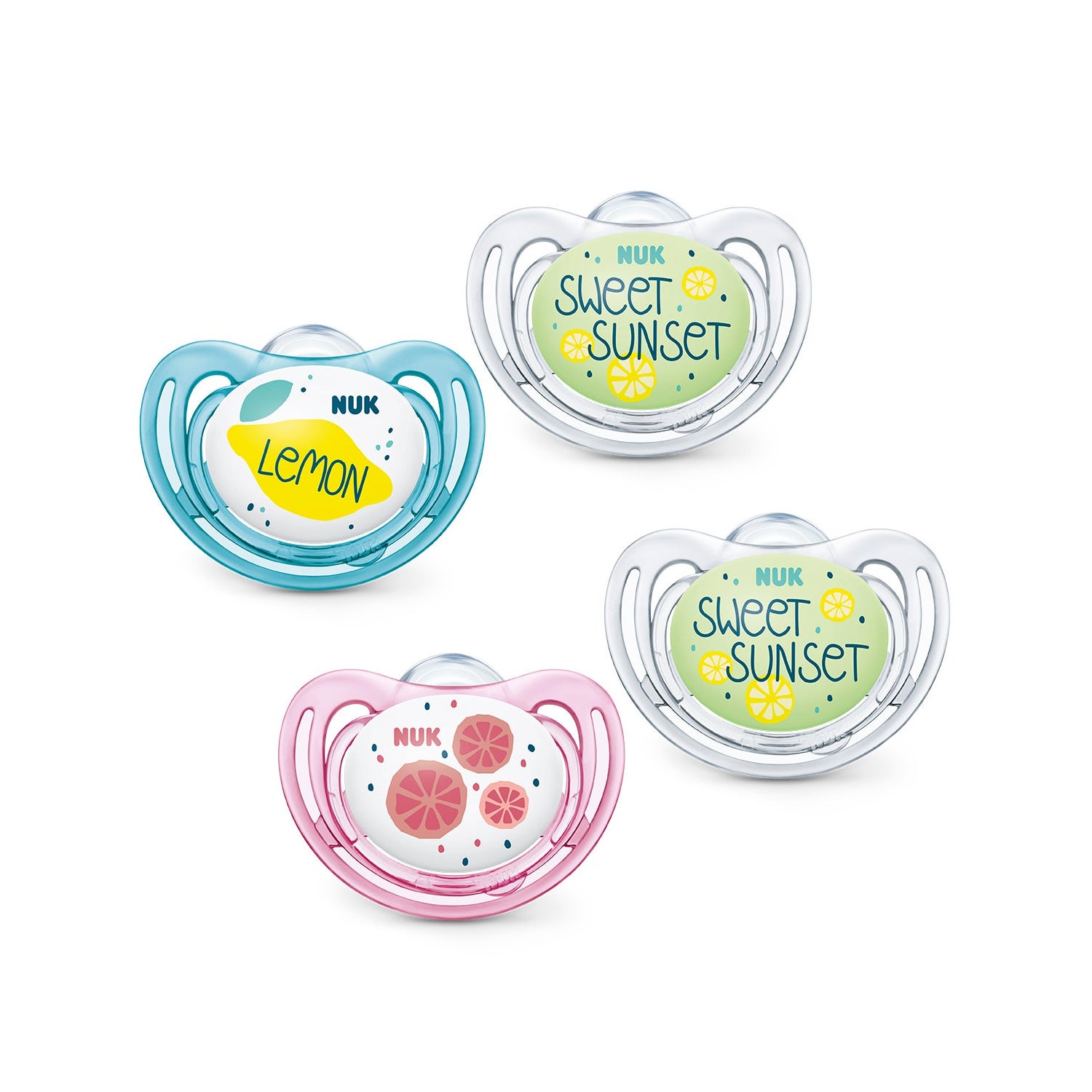 Chupeta de silicone para bebés dos 18 aos 36 meses de idade. A Nuk é uma empresa encarregada de fornecer qualquer tipo de artigos relacionados com crianças e bebés. Este é um produto feito de silicone que é normalmente usado para acalmar os bebés do choro. Pode ser usado tanto de dia como de noite, já que se torna uma rotina