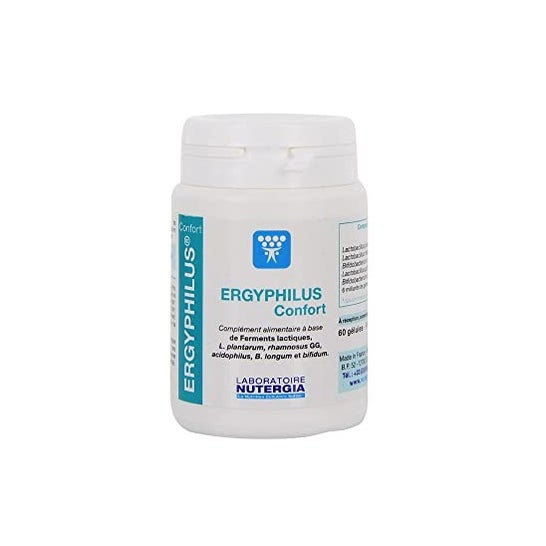 Nutergia Ergyphilus Comfort é um suplemento alimentar que ajuda a equilibrar a flora intestinal e melhora a função digestiva. Elaborado com fermentos lácticos L.plantarum e B.longum, é perfeito para reduzir os seguintes desconfortos intestinais: