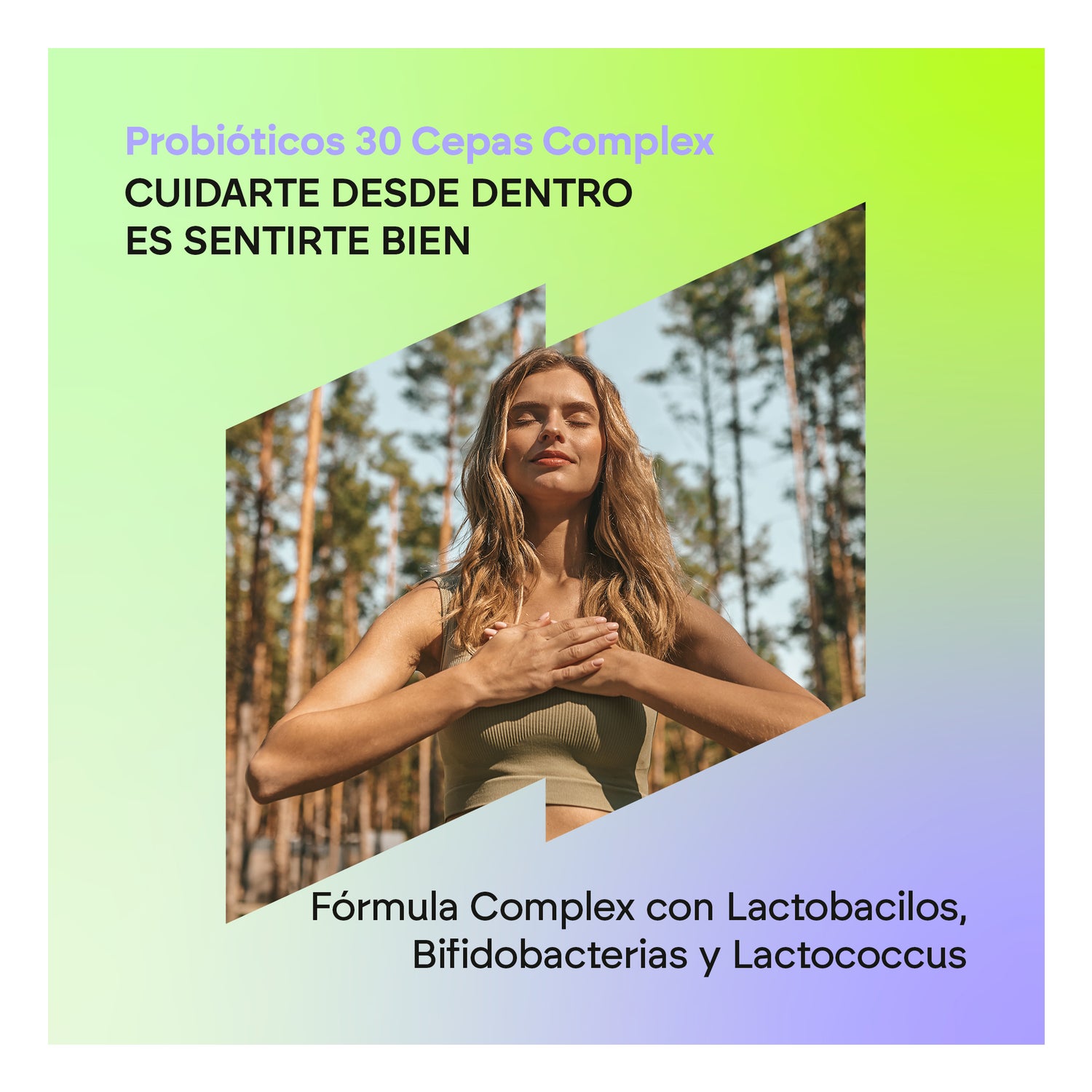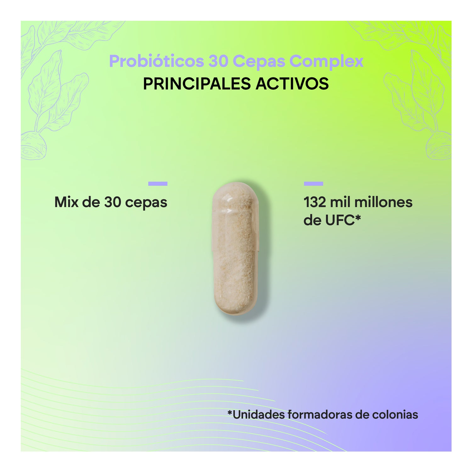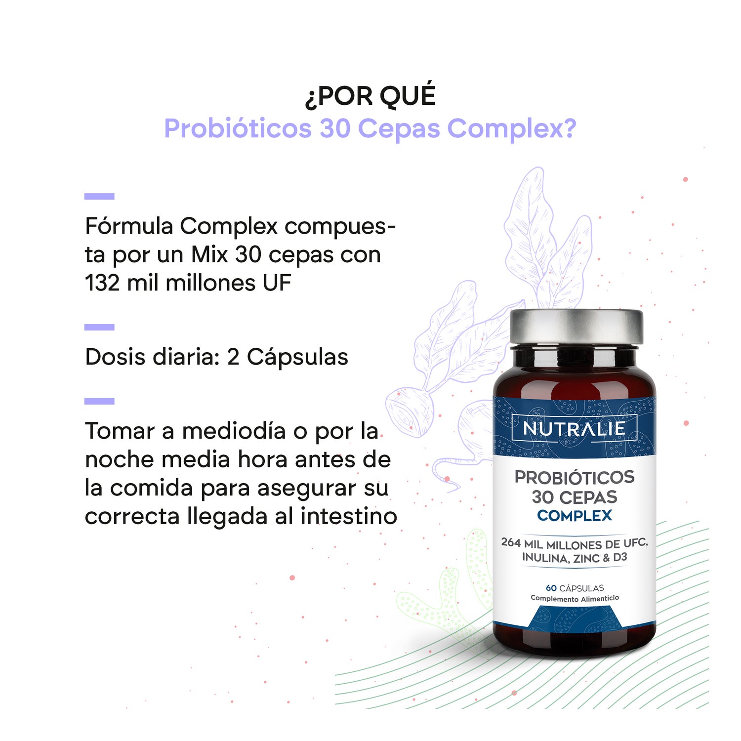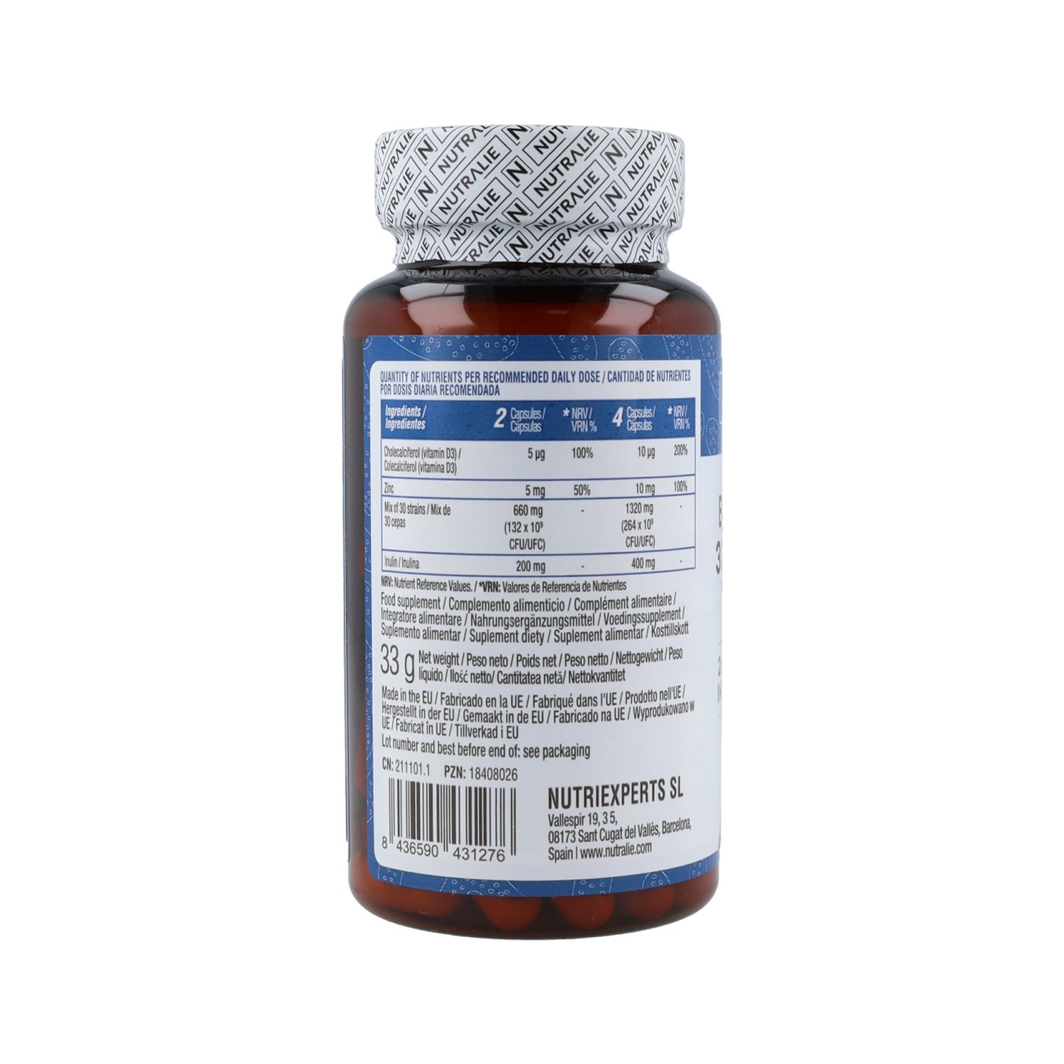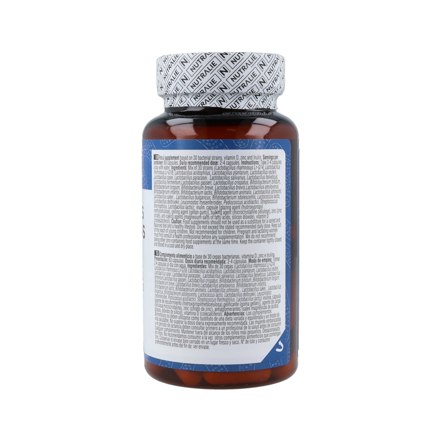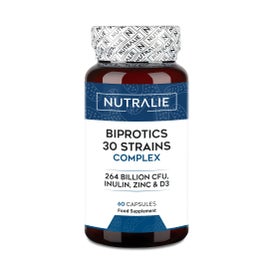 Nutralie Probióticos 30 Cepas 264 Bilhões UFC Biprotics 60caps é um complemento alimentar formulado à base de 30 cepas bacterianas, vitamina D, zinco e inulina.