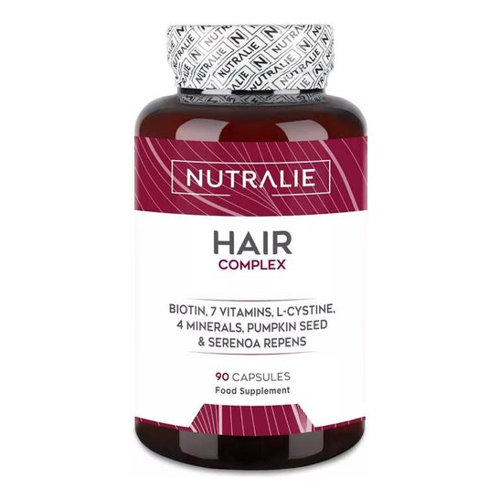 Nutralie Hair Complex com Biotina Vitaminas para o Cabelo 90caps é um complemento alimentar elaborado à base de L-Cistina e extrato seco de sementes de abóbora, desenvolvido como apoio ao cuidado capilar.