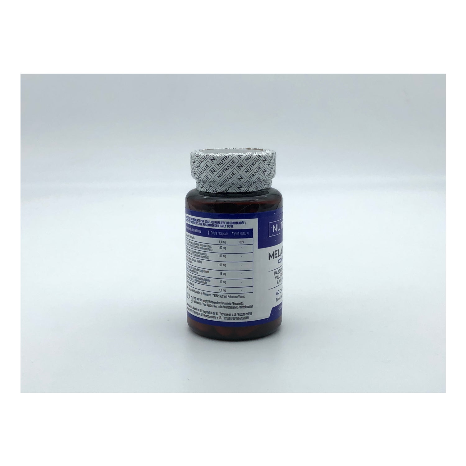 Nutralie Melatonina Complex com Passiflora + Raiz de Valeriana + B6 60caps é um suplemento alimentar vegano formulado com melatonina, flor de tília, extrato de melissa e vitamina B6.
