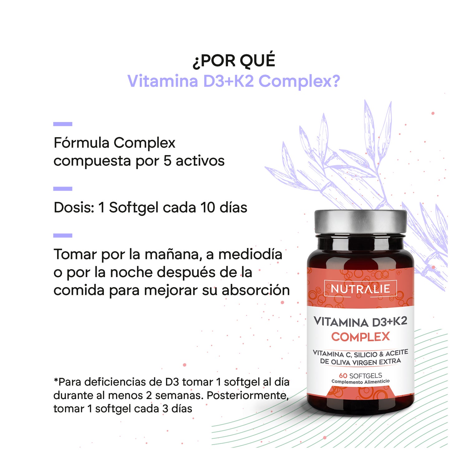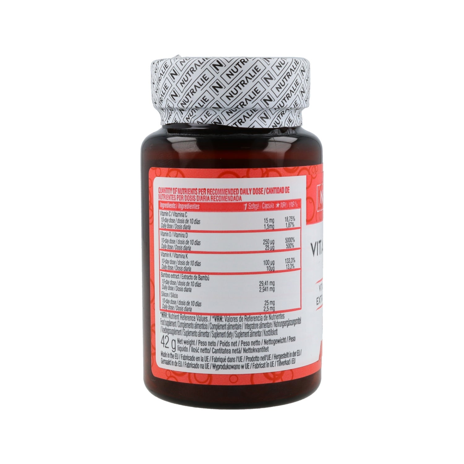 Nutralie Vitamina D3+K2 Complex 10000 UI + Vitamina C 60softgels é um suplemento alimentar formulado com azeite de oliva, vitamina C, vitamina D3 e vitamina K2.