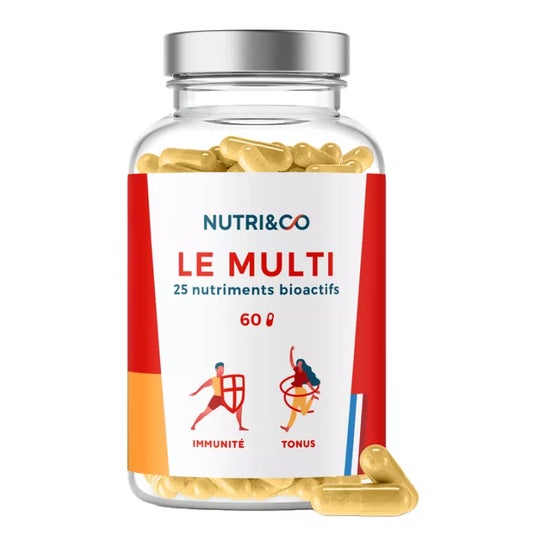 Nutri&Co Le Multi 60 pérolas é um suplemento alimentar com 21 vitaminas e minerais essenciais que contribui para o bom funcionamento do corpo, bem como para o fortalecimento do sistema imunitário e do metabolismo. A sua fórmula inclui nutrientes essenciais para o cuidado e manutenção da saúde dos olhos.