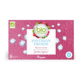 Esta infusão fria orgânica de Vitavea Santé combina os benefícios das plantas com um sabor refrescante de cereja. À base de: