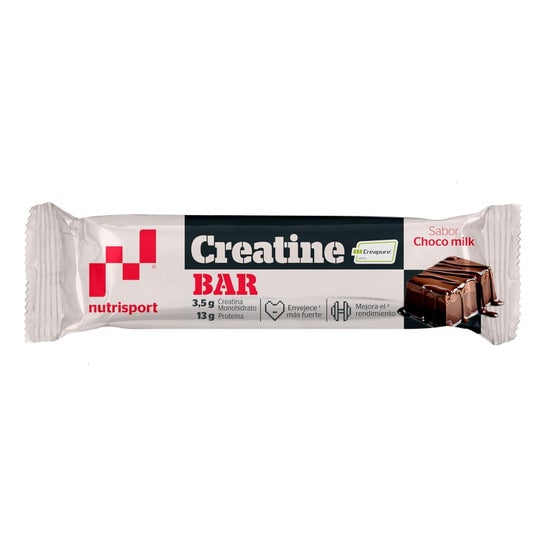 Nutrisport Creatina Bar Choco Leite 44 g é uma barrinha de 44 g pensada para atletas e pessoas ativas. Inclui creatina monohidratada Creapure® de alta pureza, com 3,5 g de creatina por unidade, e aporta 13 g de proteína.