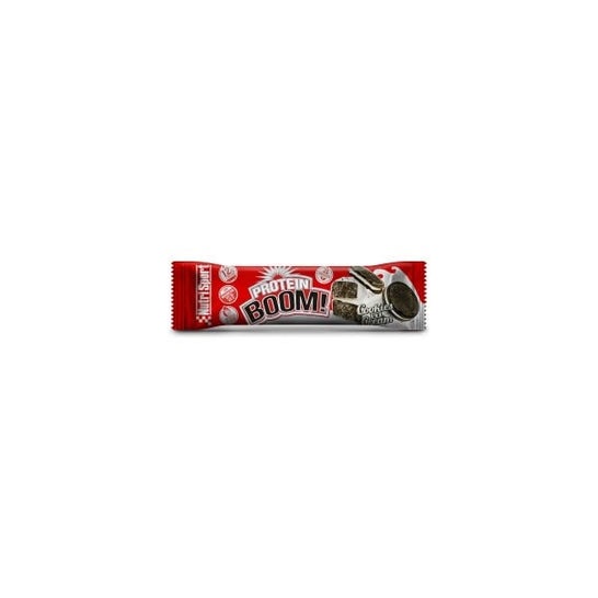 Barras proteicas com sabor a biscoito de chocolate, concebidas para melhorar a massa muscular e o desempenho desportivo. Elaboradas com hidratos de carbono estimulantes da insulina e baixo teor de açúcar, favorecem a ativação do metabolismo e a queima de gorduras. Adequado para dietas ricas em proteínas. Contém proteínas do leite, caseína, amêndoas, pedaços de bolacha de chocolate, cacau em pó, água, óleo de côco, sal, pedaços de chocolate preto e lecitina de soja.